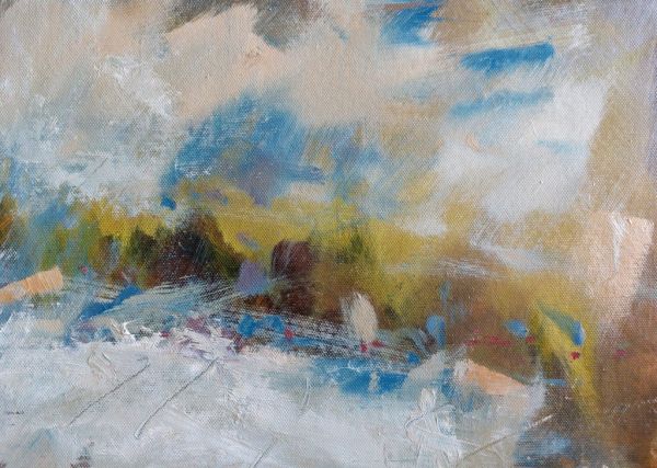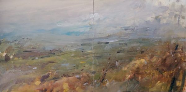 Painting is an alchemical process in a way. It is the magical process of transforming or combining elements into something new. At the beginning of a painting I might have an idea of what I’m going to paint, but most of the time this is abandoned and replaced with a new idea. Sometimes this can happen many times on the one canvas. I might scrape it off or paint over it. This creates a new surface which for me is as important as the image. Adding to this I make choices of color, form, and gesture, I set abstraction against representation, line against wash, dry against dripping brushwork and texture against smooth. Through these different techniques, landscapes often emerge ghostlike from their surroundings.